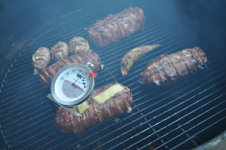 Die gefüllten Eggs wurden in Bacon eingewickelt: